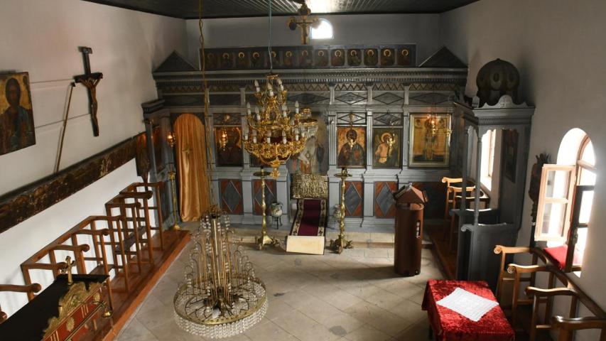 In the center of the ruined old village rises the Church of Agios Nikolaos. Although the exact date of its construction is unknown, an inscription embedded on the west façade above the entrance records its renovation in 1969, after the earthquake, likely thanks to a donation by a Lemnian of the diaspora. Its presence on the same site since the early 20th century is documented by photographs. The church is a post-Byzantine single-aisled basilica, with a semicircular apse at the sanctuary, a double-pitched wooden roof and a raised women’s gallery. The walls are of local stone with plaster, and the floor with geometric motifs in stone slabs and the colorful, carved iconostasis of neoclassical style stand out. Important relics survive, such as icons of Hosios Efstratios and of the Five Martyrs, as well as priestly vestments from destroyed churches. Today it functions mainly on feasts dedicated to Agios Nikolaos and Agios Efstratios, while visits are by arrangement with the island’s priest.
