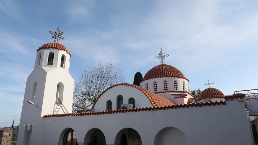 Le monastère Saint-Raphaël se trouve au nord-est de Lesbos. C’est une église à deux niveaux, à iconographie impressionnante. Le monastère actuel a été construit à l’emplacement d’une basilique paléochrétienne et est daté du XIIe s. apr. J.-C. À l’origine, c’était un monastère de femmes. En 1235, des pirates sarrasins attaquèrent le monastère et tuèrent toutes les moniales. En 1463, Saint Raphaël visita le monastère avec son ami Nicolas et il devint un monastère d’hommes. Les habitants se soulevèrent alors contre les Turcs, mais échouèrent. Les Turcs décidèrent de les punir ; ils se cachèrent au monastère. Saint Raphaël résista et ils le torturèrent et le tuèrent, lui, son ami et la fille du maire, Irène, âgée de 12 ans. Puis ils incendièrent le monastère et s’en allèrent. En 1964, l’higoumène Eugénia Kleidará construisit le monastère des néo-martyrs Saints Raphaël, Nicolas et Irène, dont les reliques y sont conservées. Le jour de leur martyre, le 9 avril, a lieu une grande fête religieuse.