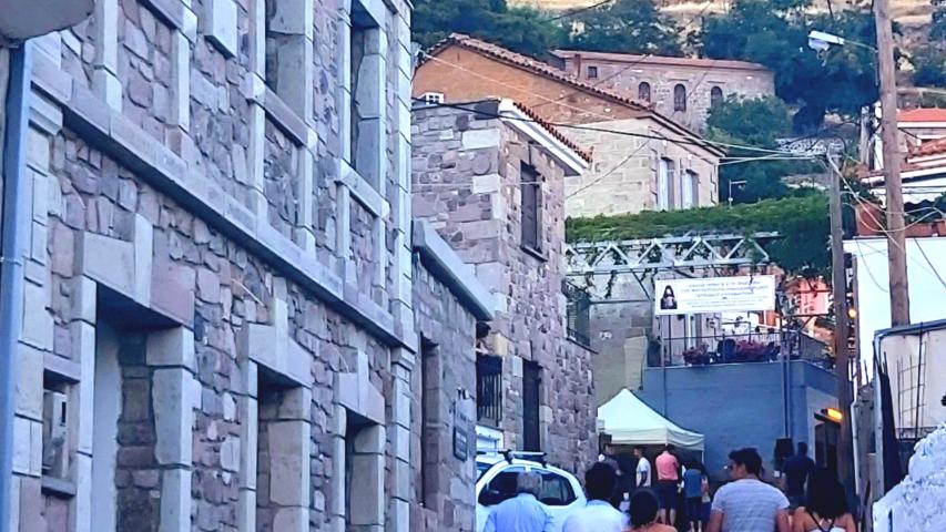 Stýpsi est un village semi-montagnard pittoresque du nord de Lesbos, bâti sur les pentes du mont Lepétymnos à environ 400 m d’altitude, à seulement 10 km de Pétra. Son nom vient de l’alun (styptería), minerai abondant utilisé autrefois en tannerie et en teinture. Le village conserve intact son caractère traditionnel, avec maisons en pierre, ruelles pavées, cafés et tavernes pittoresques. En été, la vie s’épanouit dans les rues et les cours, les habitants dégustant leur café ou leur ouzo sous les treilles. Stýpsi fut la patrie de figures importantes, comme le macédonomaque Germanós Karavangélis et le patriarche œcuménique Beniamín. Parmi ses curiosités se distinguent les églises de la Sainte-Trinité — basilique à trois nefs, en croix, à coupole, avec un iconostase en bois doré provenant d’une église plus ancienne — et de la Dormition de la Théotokos, ainsi que les ruines du « Kastrelli » médiéval, témoignant du passé historique de la région. Stýpsi est également célèbre pour ses mariages traditionnels et pour sa grande fête du 23 août, une célébration animée de musique et de danse.
