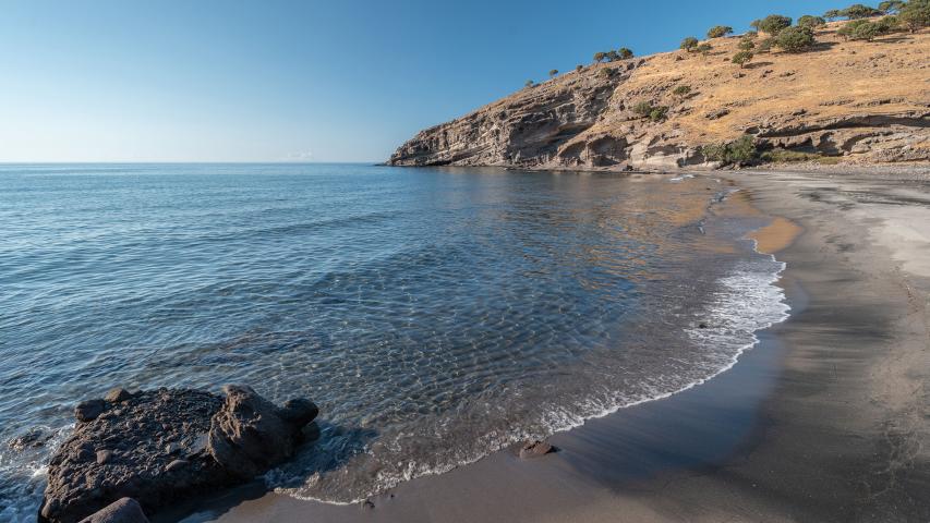 La plage Trigari s’étend sur la côte ouest de l’île, entre Agios Dimitrios et Lidario, et est considérée comme l’une des plus belles, bien que moins connue. Longue, elle mêle fins galets et sable doré, cadre idyllique pour la baignade et le repos. À l’arrière de la grève, de majestueux chênes forment des ombrages naturels, idéaux lors des chaudes journées d’été. Bien qu’exposée aux vents du nord, elle offre une atmosphère rafraîchissante et des eaux d’une pureté revigorante. L’accès est facile, par piste, permettant en outre de profiter des vues et de la beauté sauvage du paysage tout au long du trajet.