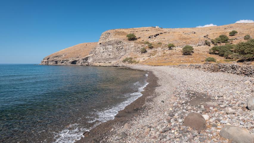 Η παραλία του Αγίου Αντωνίου βρίσκεται στη δυτική πλευρά του νησιού και είναι η πρώτη παραλία που συναντάει κανείς νότια του οικισμού. Διαθέτει κρυστάλλινα, διαυγή νερά, άμμο και ψιλό μαύρο βότσαλο. Είναι ιδανική για οικογένειες με παιδιά και για όσους αγαπούν το κολύμπι με μάσκα ή ψαροτούφεκο. Μάλιστα, αποτελεί ιδανικό προορισμό για όσους αναζητούν φυσική ομορφιά και χαλάρωση. Παρά τη μικρή της έκταση, προσελκύει αρκετό κόσμο και προσφέρει φυσική σκιά κάτω από βελανιδιές, ενώ η πρόσβαση είναι εύκολη μέσω αγροτικού χωματόδρομου 6 χιλιομέτρων. Είναι ευάλωτη στους βόρειους ανέμους, προσφέροντας δροσιά στους λουόμενους τις ζεστές ημέρες του καλοκαιριού.