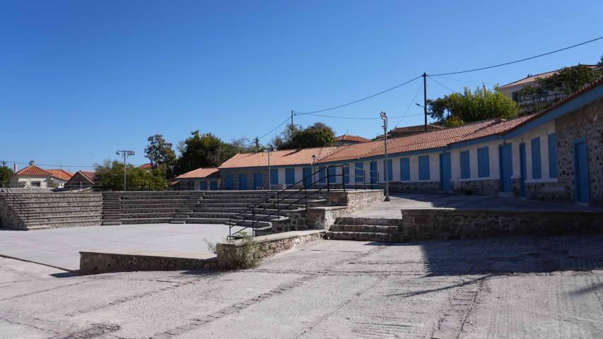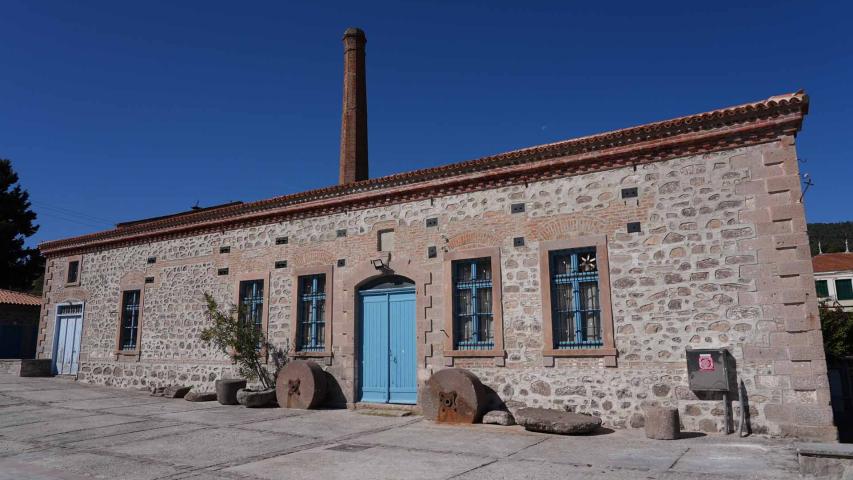 Το Πολύκεντρο Μανταμάδου στεγάζεται στο Κοινοτικό Ελαιοτριβείο Μανταμάδου, γνωστό ως «Η Μηχανή τ΄Αγιού», που έχει αποκατασταθεί και λειτουργεί σήμερα ως Πολιτιστικό Κέντρο. Η αίθουσα πολλαπλών χρήσεων φιλοξενεί εκδηλώσεις θεάτρου, κινηματογράφου, διαλέξεις, εκθέσεις και άλλες πολιτιστικές δραστηριότητες. Το ελαιοτριβείο ανεγέρθηκε μεταξύ 1905 και 1909 με εθελοντική χειρωνακτική εργασία των κατοίκων, σε σχέδια του πρωτομάστορα Ασημάκη Φούσκα και με επιρροές από το βρετανικό στυλ βιομηχανικών κτηρίων της εποχής. Το συγκρότημα περιλαμβάνει προαύλιο, περιμετρικές αποθήκες για τον ελαιόκαρπο και το λάδι και ένα μεγάλο κεντρικό κτήριο με τρεις αίθουσες: την κύρια αίθουσα με τα μηχανήματα παραγωγής λαδιού και ξύλινο πατάρι, την αίθουσα της ατμομηχανής και την αίθουσα του καζανιού. Ο σχεδιασμός των μηχανημάτων επέτρεπε τη μετάδοση κίνησης σε όλα τα μηχανήματα με ιμάντες. Το ελαιοτριβείο λειτούργησε έως το 1967, αποτελώντας σταθμό στην οικονομική και κοινωνική ιστορία του Μανταμάδου.