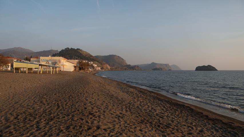 Η παραλία στη Σκάλα Ερεσού βρίσκεται νοτιοδυτικά του νησιού, με μήκος 3χλμ., και θεωρείται μια από τις πιο όμορφες παραλίες του νησιού. Καλύπτεται από λεπτή γκρίζα χοντρόκοκκη άμμο, ενώ στα άκρα της είναι βραχώδης. Τα νερά της είναι ήρεμα, καθώς δεν προσβάλλεται από τα αιγαιοπελαγίτικα μελτέμια. Ο επισκέπτης έχει μια πληθώρα επιλογών, καθώς συνδυάζει γραφικά ταβερνάκια, καφετέριες και μπαράκια που βρίσκονται σε απόσταση αναπνοής από την ακτή. Επίσης, διαθέτει ομπρέλες και ξαπλώστρες και είναι ιδανική για θαλάσσια σπορ (ποδήλατα, ιστιοπλοΐα, κανό), ενώ υπάρχει διαμορφωμένος χώρος για πετοσφαίριση. Δυτικά της παραλίας υπάρχει μια μικρή λίμνη γεμάτη με χελώνες. Η παραλία της Σκάλας Ερεσού έχει βραβευτεί πολλές φορές με τη Γαλάζια Σημαία και έχει κριθεί από την Ε.Ε. ως η πιο καθαρή και φροντισμένη παραλία σε όλη την Ελλάδα. Ο οικισμός αποτελεί τον απόλυτο καλοκαιρινό προορισμό, καθώς προσφέρει ευκαιρίες απόλυτης χαλάρωσης, αλλά και έντονης νυχτερινής ζωής.