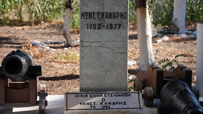 Efsanevi ateş kayığı kahramanı Konstantínos Kanáris’in (1793–1877) doğduğu ev, çevrili bir parselde bulunuyordu. Asıl adı Konstantís Nikolaou Spiliotéas idi. Kanáris, 1821 Yunan İsyanı’nın kahramanı olmanın yanı sıra genç Yunan devletinin siyasetinde de önemli rol oynadı. Kral Othon döneminde yeniden göreve çağrıldı; amiral olarak hizmet etti ve Bahriye Nazırı oldu. 1862 yazında hükümet kurmakla görevlendirildi; iki kez başbakanlığa geldi. Toplamda dört kez başbakan oldu; bu dönemlerde Parlamento Anayasa’yı iki kez oyladı ya da değiştirdi. Kanáris, 1877’de görevdeyken kalp krizinden öldü. Psara’daki evi 1824’te Türklerce tamamen yok edildi. Bugün alanda küçük bir bahçe ve büstü yer alır; iki dönem topuyla çerçevelenmiştir ve Psara’nın en önemli görülmeye değer yerlerinden biridir.